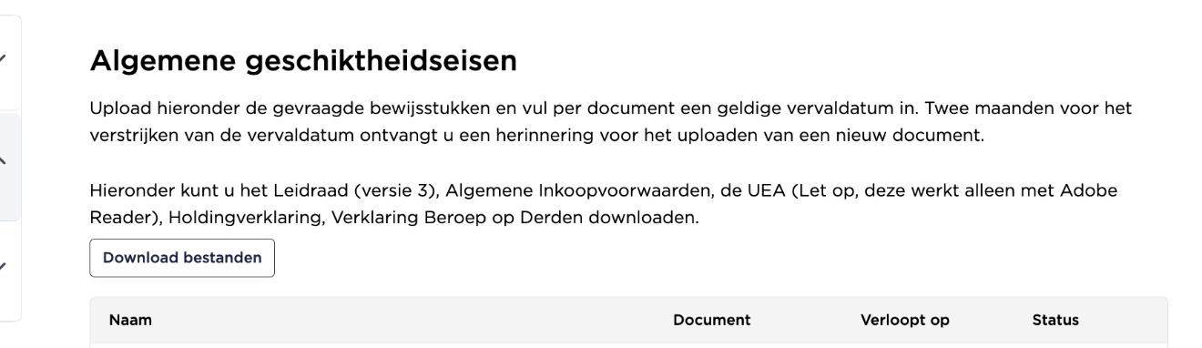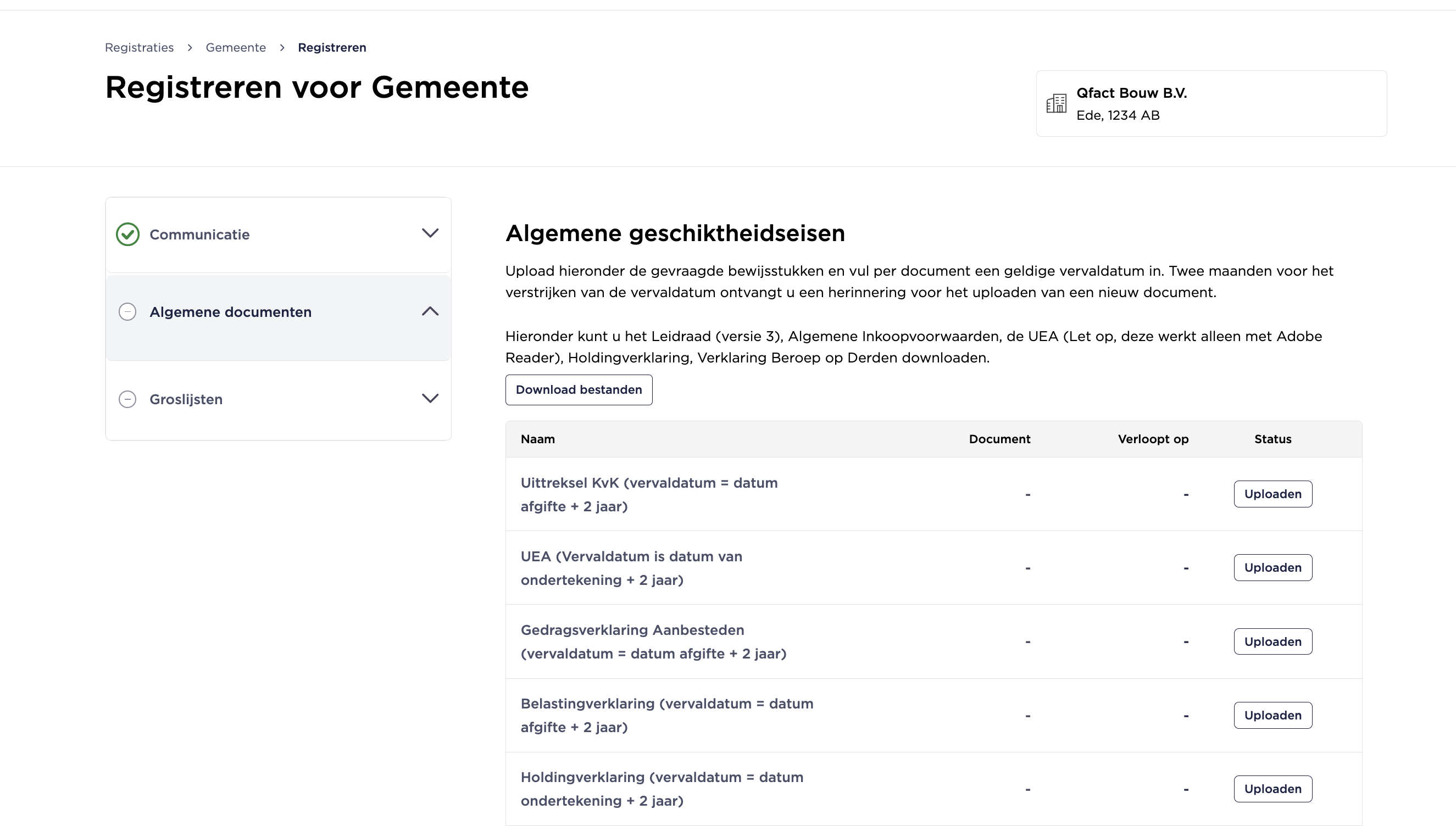 6. Upload de gevraagde documenten en let erop dat je de juiste vervaldatum invult. Klik op 'Uploaden' om documenten toe te voegen.