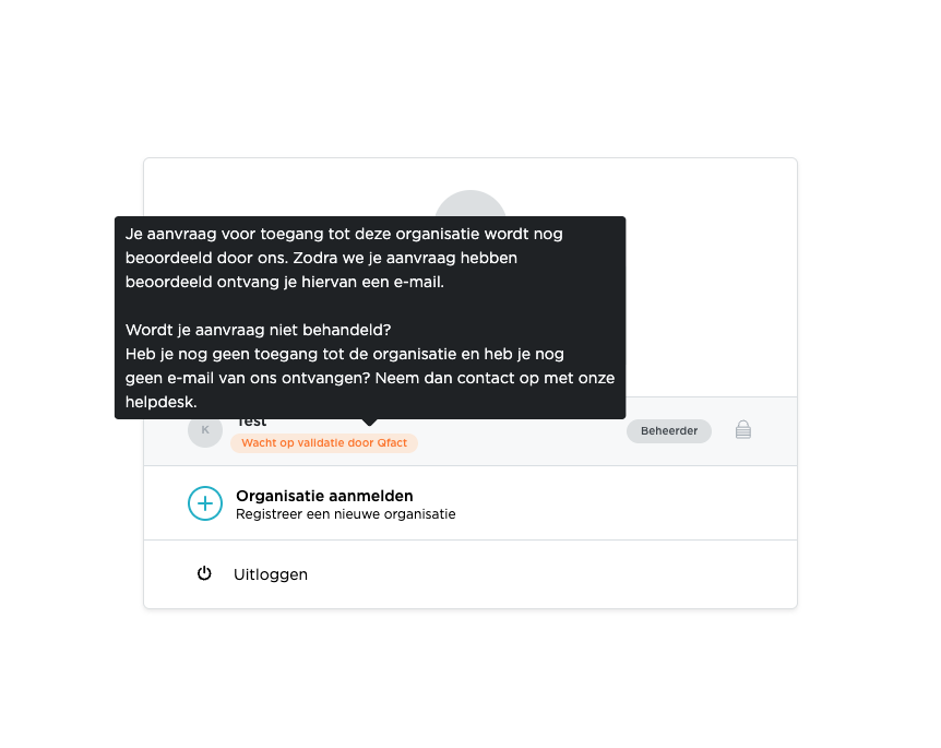 Is er al minimaal 1 actieve user? Dan komt de aanvraag in Qfact onder collega’s terecht. Dit label wordt ook getoond als je bent ingelogd.
