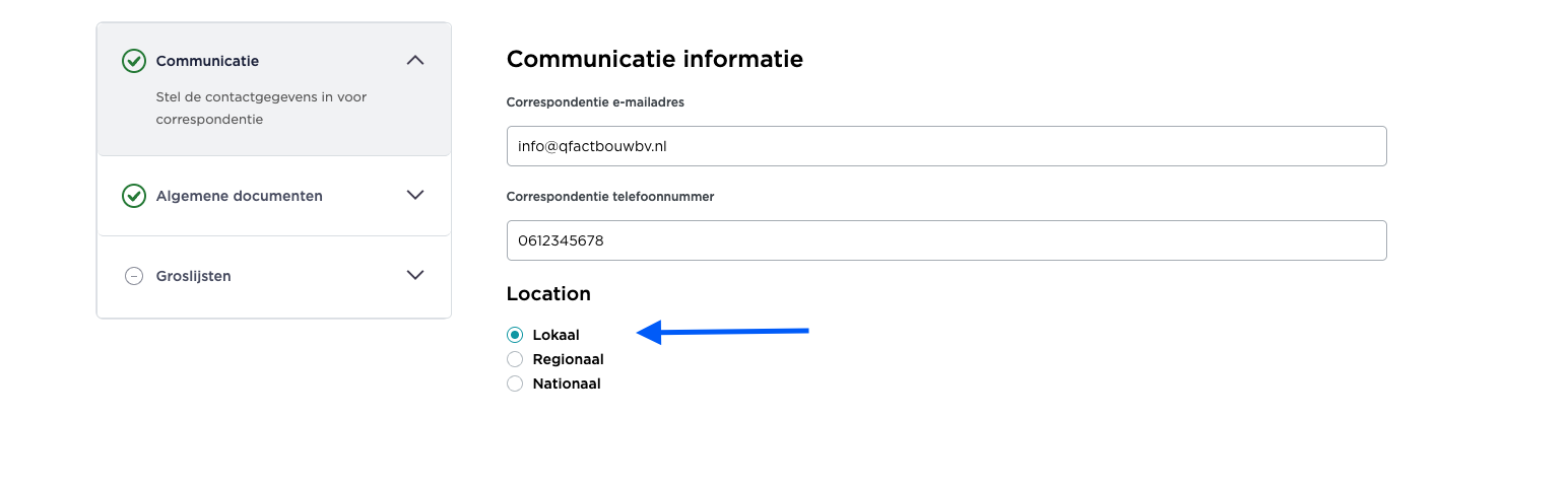 Bij sommige opdrachtgevers zie je op de Aanmeldingspagina de optie 'vestigingsplaats' met een sterretje staan. In de meeste gevallen vult de opdrachtgever dit in voor jouw bedrijf.